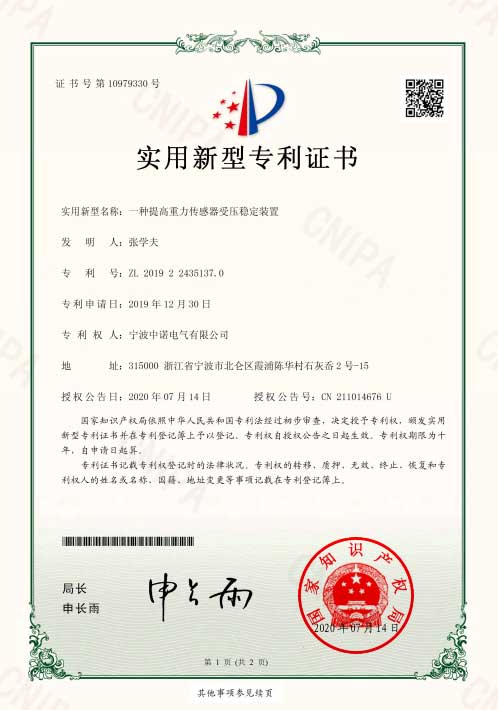 提高重力傳感器受壓穩(wěn)定裝置